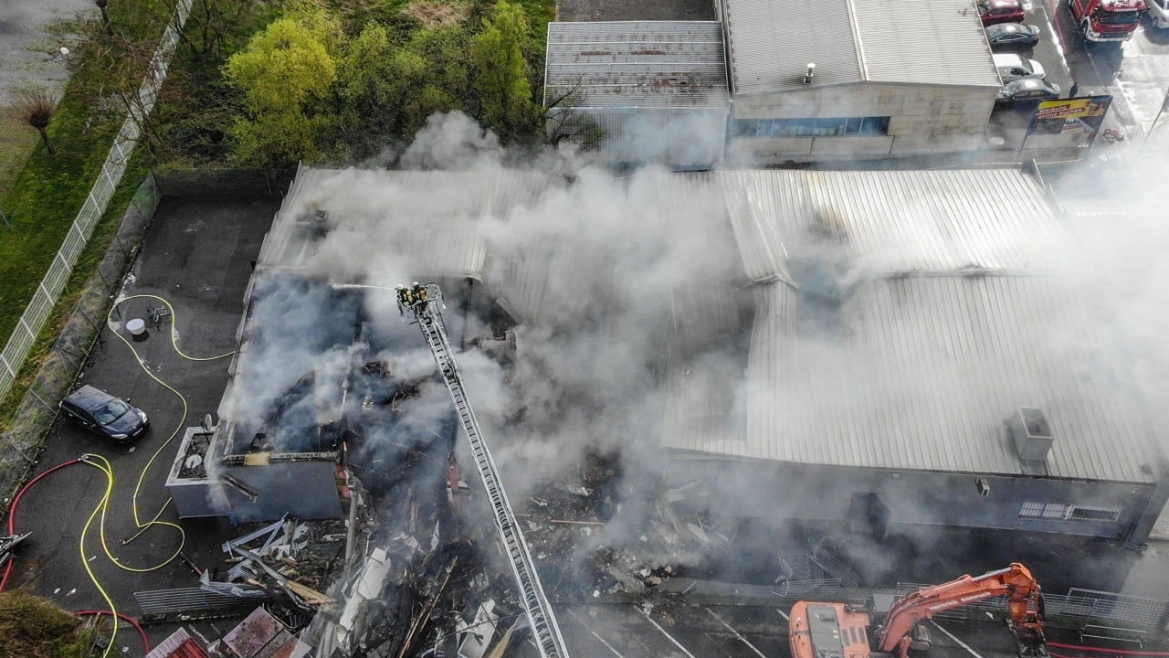 Кадри, публикувани в германските медии, показват огромен пожар на покрива на нощния клуб, който се намира в индустриална зона на града.