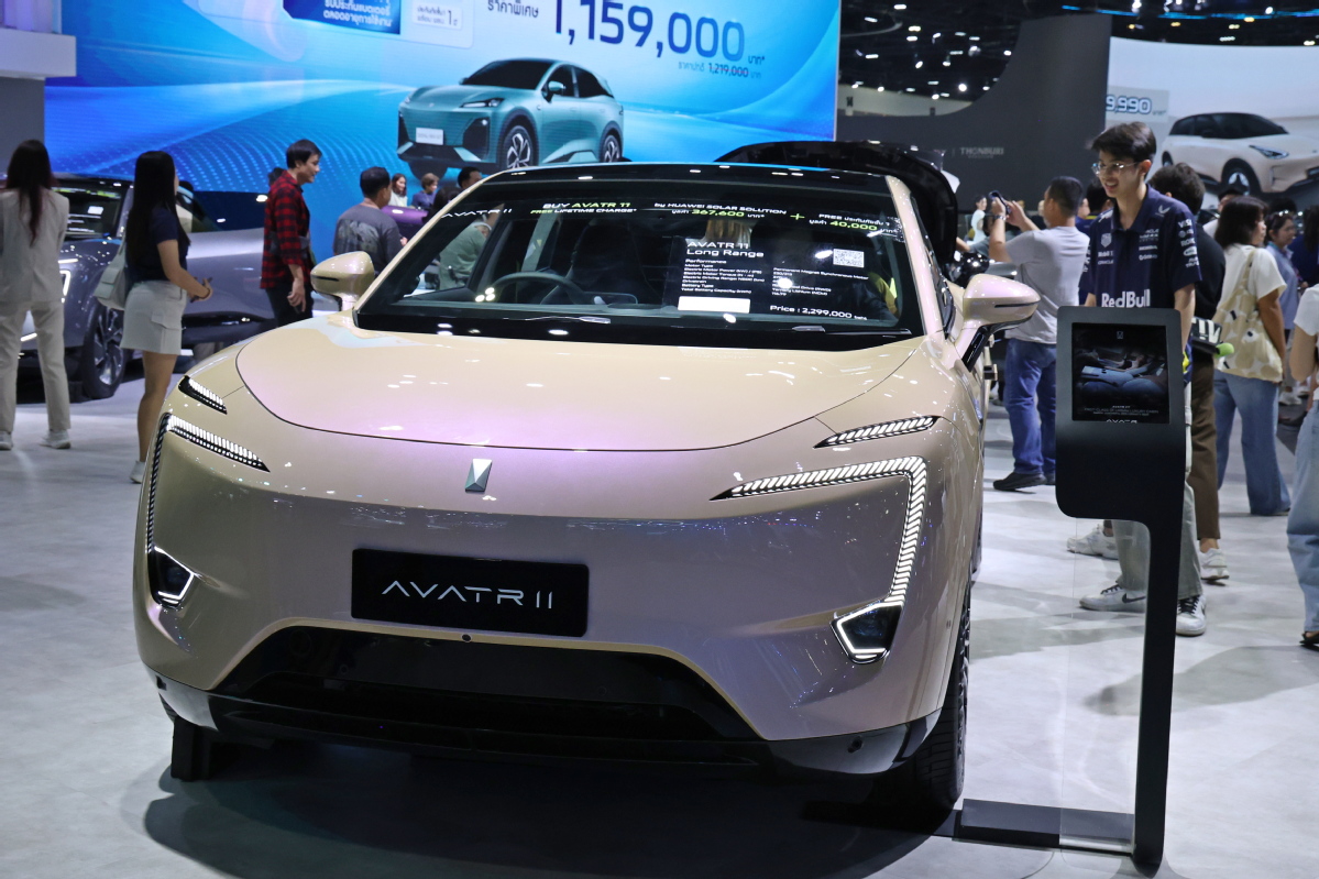 Посетител проверява електрическо превозно средство Avatr 11, изложено на 47-ото международно автомобилно изложение в Банкок, проведено в Банкок, Тайланд, на 26 март 2026 г. [Photo/Xinhua]