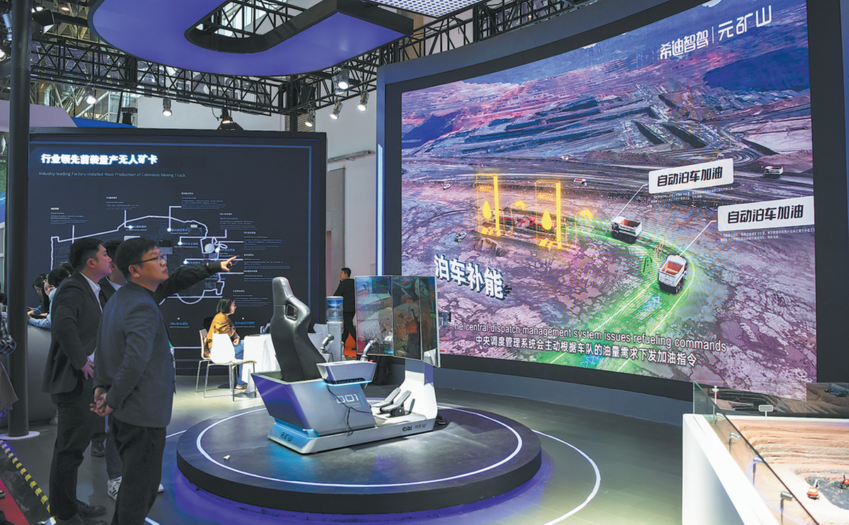 Посетителите научават за Meta Mine System от доставчика на технологии за автономно шофиране и продукти CiDi по време на второто Китайско международно изложение за верига за доставки в Пекин на 27 ноември 2024 г. ZHANG HAOFU/XINHUA