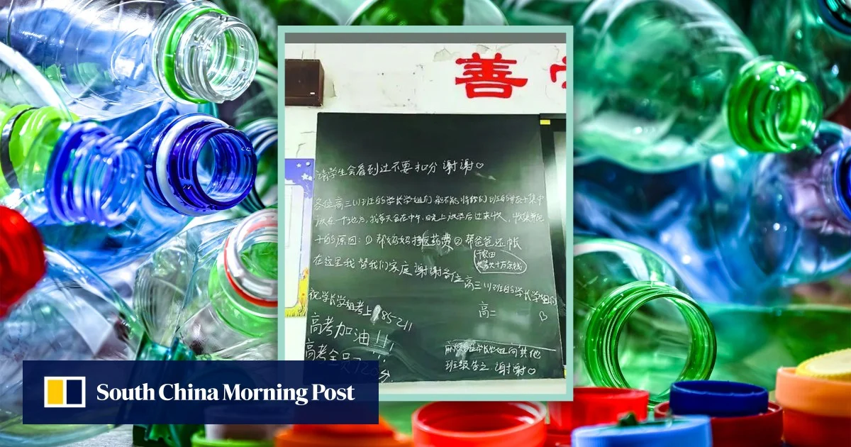 Китайски ученик от гимназията, който помоли съучениците си да запазят използваните си бутилки с вода, за да може да ги продаде, за да облекчи финансовото състояние на семейството си, получи похвала онлайн.