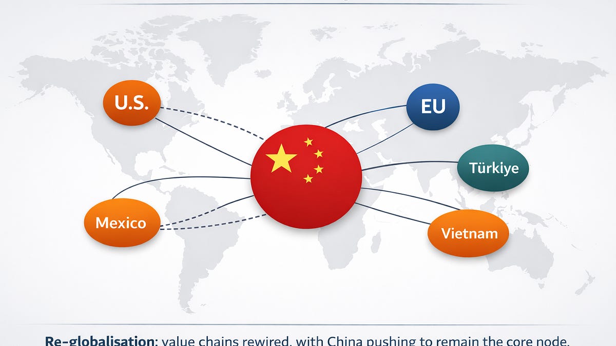 От стратегическа гледна точка това всъщност не е теория на търговията. Това е наративен мениджмънт с конкретна цел: да се нормализира „повторната глобализация“ като правилния етикет за момента и „Китай като основен възел“ да звучи като факт, а не като избор.